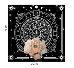 Tapete de tarot Sol de medidas 75 x 75 centímetros tipo alfombrilla, resistente y espectacular.